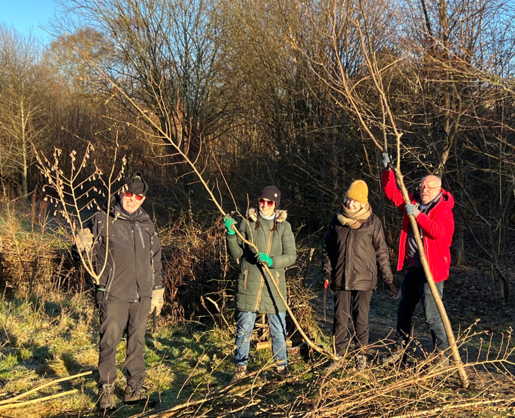 The woodland needs care to encourage the species we want and fine-tune its ecology. Our teams of volunteers might be seen tree felling, coppicing, hedge-laying and cutting back bramble and Himalayan balsam. All welcome, no experience required!