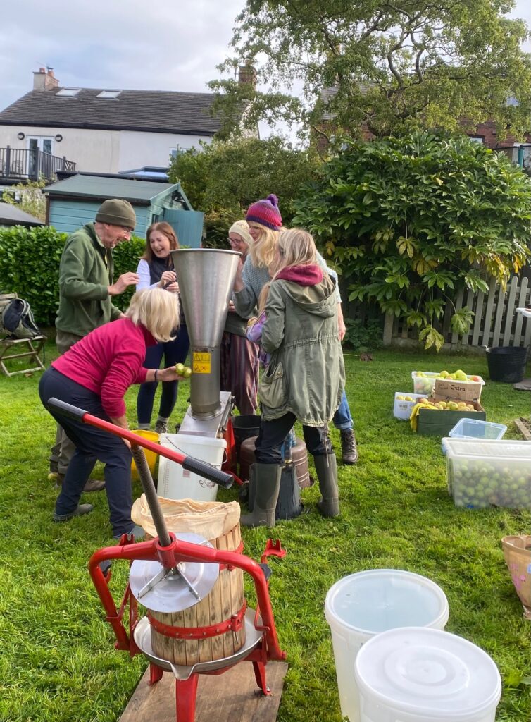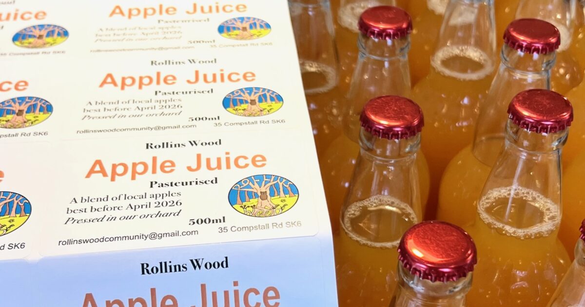 Those who donated apples can collect a bottle as a thank-you gift on Saturday (11am–1pm) or Sunday (2pm–4pm) from 35 Compstall Road, or before our AGM on Wednesday evening at The Spring Gardens.